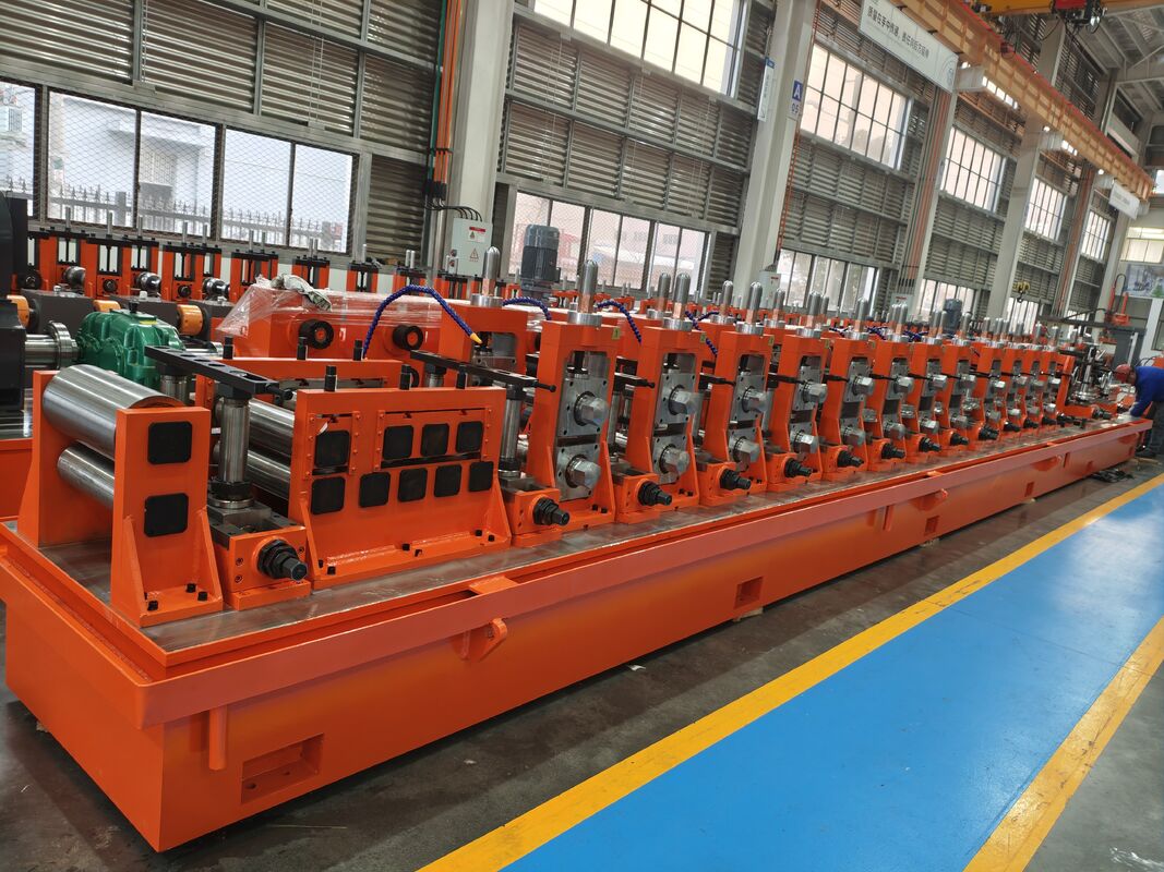 A tube roll forming machine is a type of industrial machinery used to produce hollow, cylindrical tubes or pipes from flat metal strips or coils. Roll forming is a metalworking process that involves passing a continuous strip of metal through a series of rollers to gradually shape it into the desired cross-sectional profile. In the case of a tube roll forming machine, the goal is to create tubes or pipes with a circular or custom cross-section.